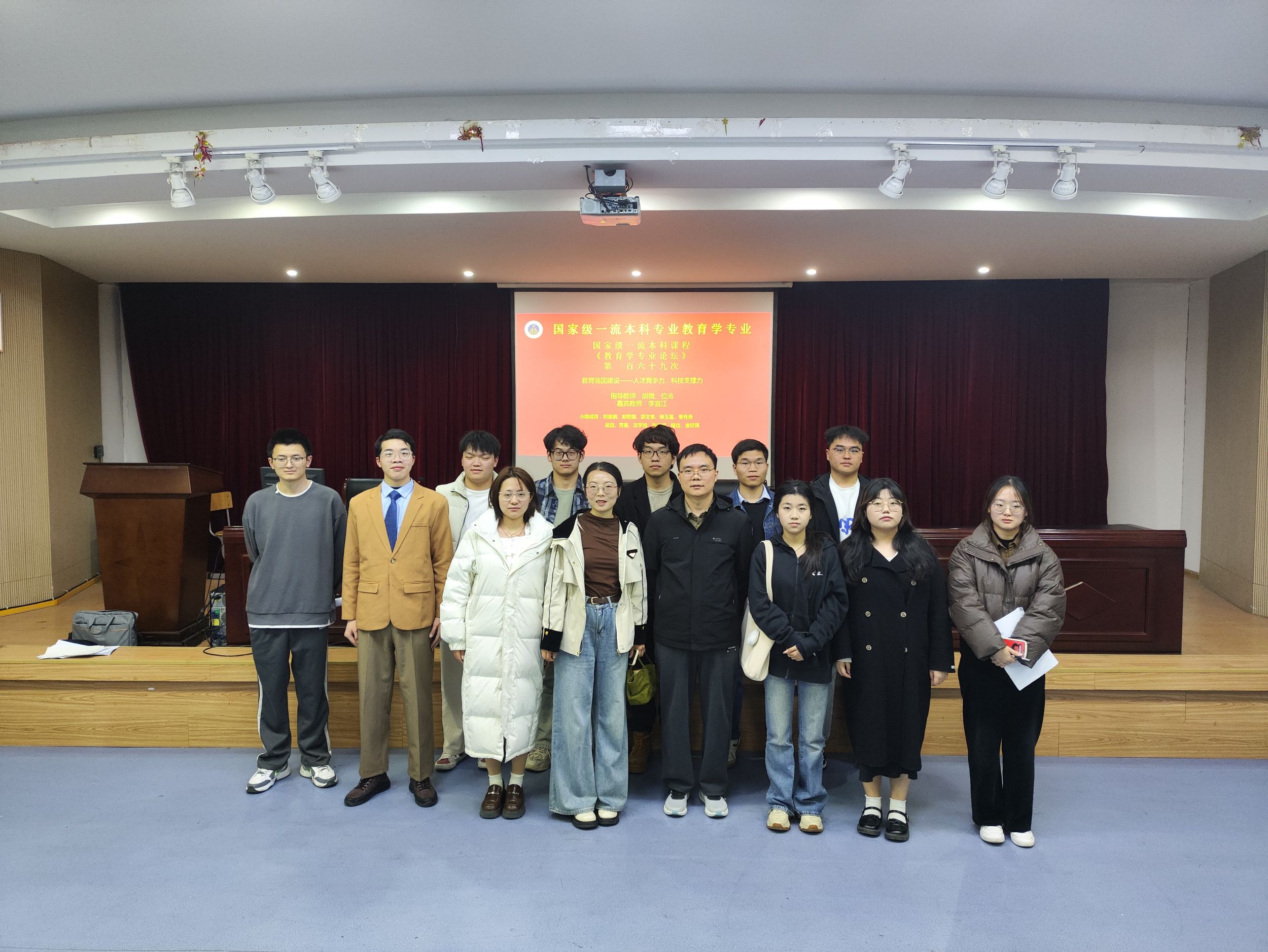 3月23日晚,国家级一流本科专业建设点教育学专业第一百六十九次专业论坛在图书馆报告厅顺利举行。莅临本次专业论坛嘉宾教师有李宜江老师以及指导教师胡微老师和位涛老师。22级、23级以及24级全体本科生到场参加,并由22级教育学郑哲麒、孙旭润分别担任上、下半场主持人。