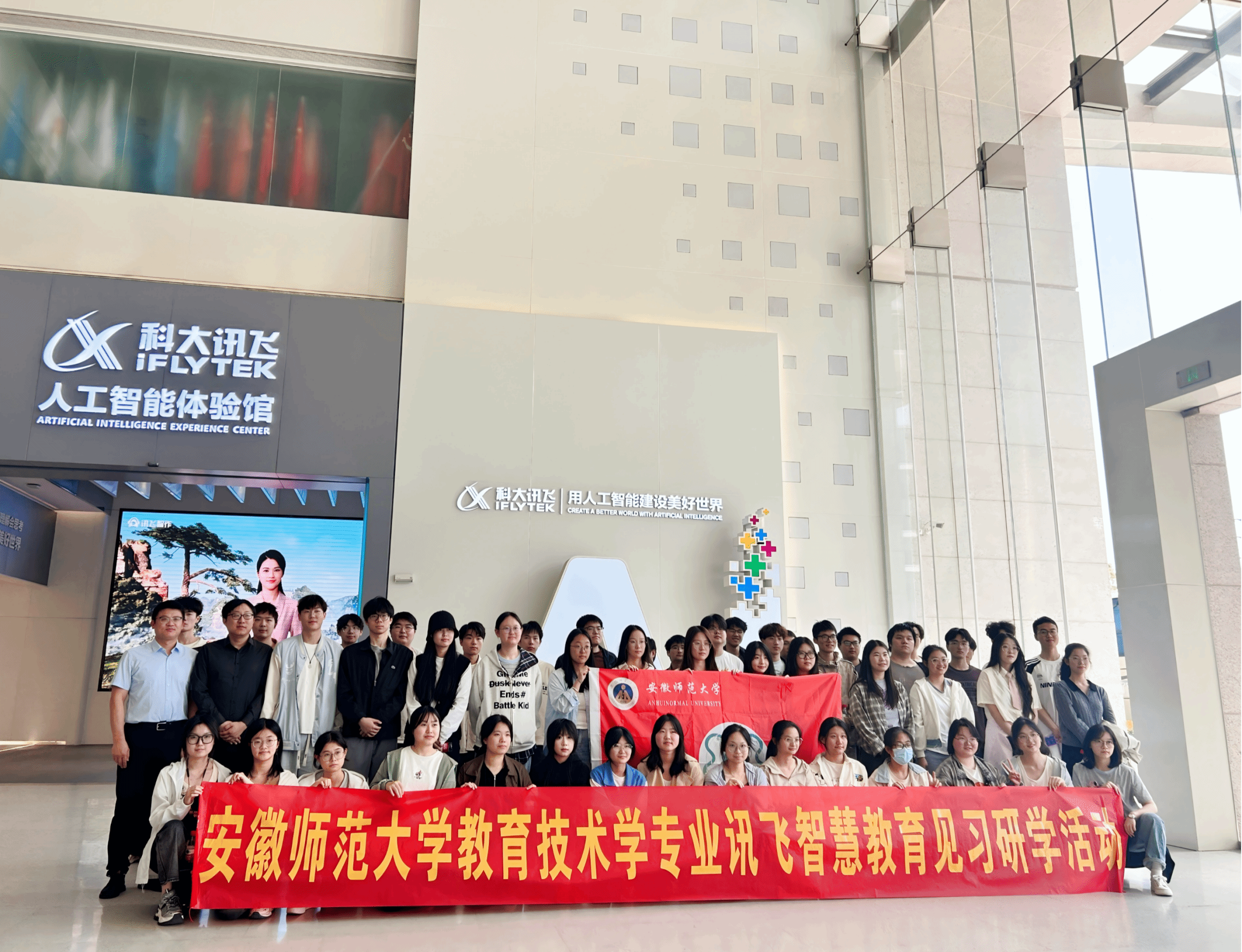 2025年4月25日,安徽金年会2022级教育技术学专业49名同学,在专业负责人肖文老师及研究生助教的带领下,前往安徽省合肥市科大讯飞语音产业基地开展“讯飞智慧教育”见习活动,深入感受智慧教育的魅力与科技赋能教学的创新实践。