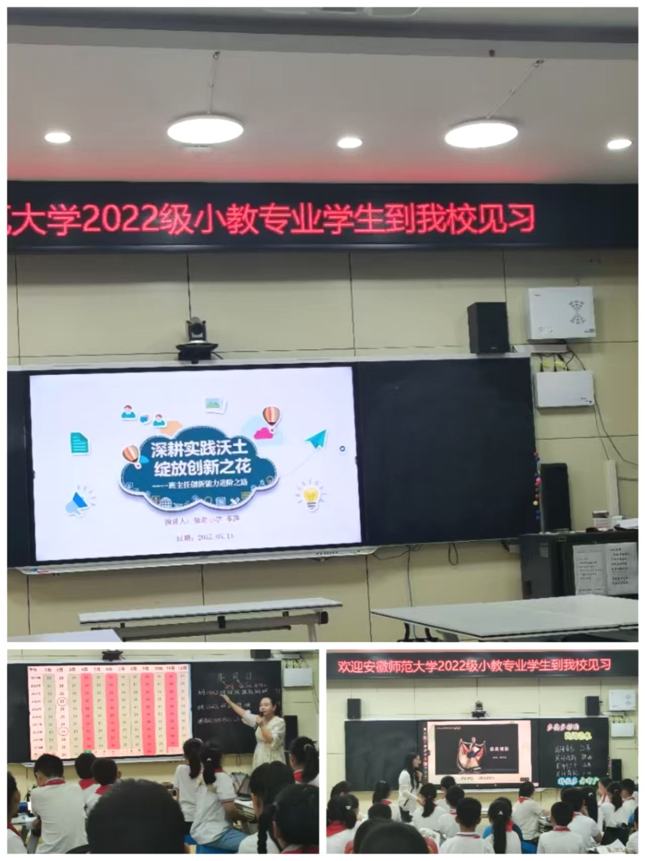 为深化师范生对小学教育的认知,提升实践教学能力,2022级小学教育(全科型)专业2班全体本科生于2025年5月15日在专业负责人王芳老师和班主任吴颖博士的带领下,赴芜湖市镜湖小学开展教育见习活动。本次活动以“观摩·反思·成长”为主题,通过课堂观察、班级管理实践、教研交流等形式,助力学生夯实专业基础,实现理论向实践的转化。