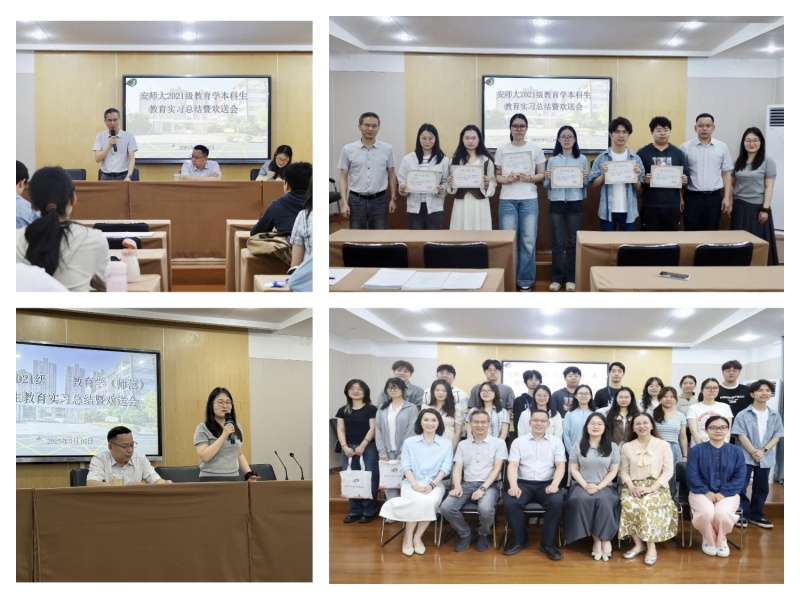 5月16日至20日,教育科学学院2021级教育学专业的41名本科生圆满完成在安徽师范大学附属小学中校区、文昌西路校区、崇文分校及清华附中合肥学校四个实习基地为期12周的教育实习任务。实习基地如期举行2021级教育学专业教育实习总结大会暨实习欢送仪式,实习学校领导、实践导师、教科院教师以及实习生参加。