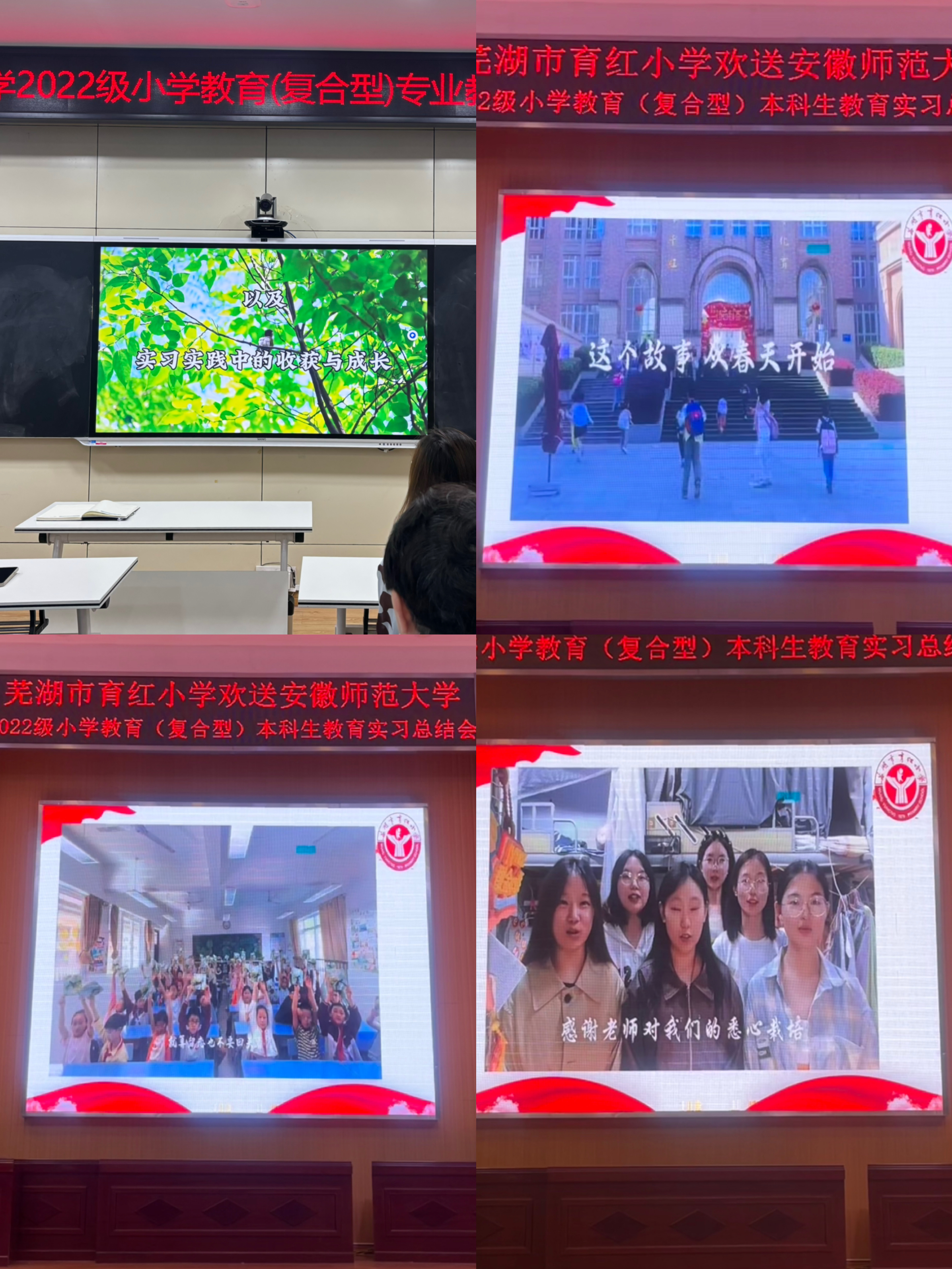 教育科学学院2022级小学教育(复合型)专业全体本科生分别于2025年6月5日、6月6日在芜湖市育红小学和镜湖小学举行了教育实习总结大会。专业负责人陈晨以及姚运标、胡微等指导老师参加会议。