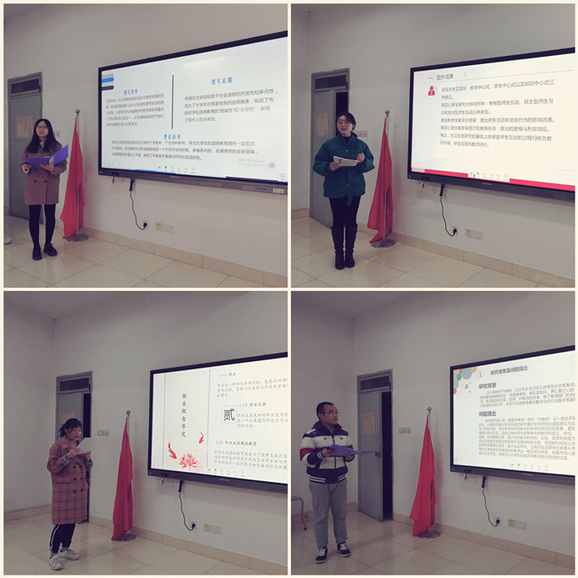 会上,参加开题报告会的各项目组成员以饱满的精神风貌,通过PPT展示,分别就项目研究的背景和意义、项目内容、创新点分析和研究进度安排等方面做了详细介绍,同时也就研究中可能遇到的困惑和疑难向各位指导老师求经问道。