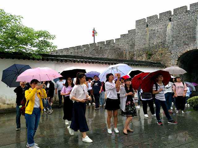 清晨,同学们集体乘车前往歙县,尽管是雨天,大家的激情却丝毫不减。车窗外,滴答作响的雨声和着春色撩人的风景,体现了江南美景的魅力。一路上,同学们欢声笑语,热情不减,在行驶了三个多小时后到达目的地。