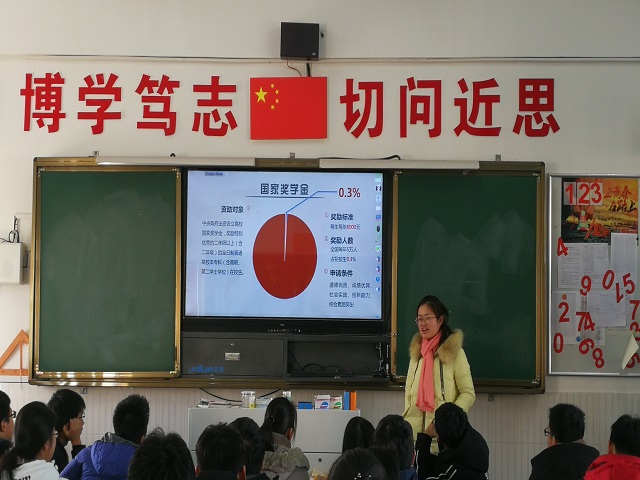 宣讲过程中,方文波同学结合自己在大学中的亲身经历,详细的向同学们讲述了国家奖学金、国家励志奖学金、国家助学金、校本奖学金等各类奖助学金的设立背景、评选依据、资助金额等,鼓励大家要力争上游,好学奋进,把握好高中为数不多的几个月时间,为自己的人生添光加彩。在宣讲中,方文波同学强调党和政府非常关心大学生的成人成才成长,不会让任何一位同学因为家庭经济原因而辍学。她还多次用自己在大学期间的奋斗经历传播正能量,激励同学们在人生的任何一个阶段,都要坚定信念,勇往直前,无论是高中还是大学,都是青春奋斗的阶段,将汗水献给青春,青春也定将不会负我。