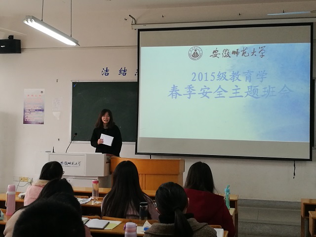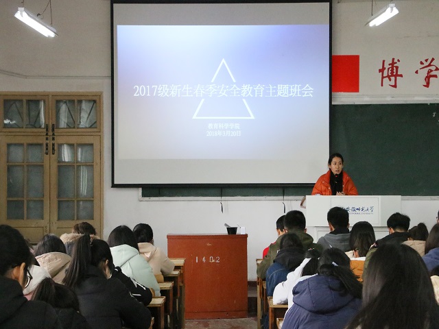 为了进一步落实安全教育,教科院各年级分别开展了相应的主题教育班会。17级辅导员谭茹轩老师于3月20日下午于教学楼1401开展了大一春季安全主题教育班会。谭老师就寝室安全问题,再次强调禁止违规电器的使用以及注意用电安全。随后就出行,兼职等情况,强调了大一新生们应时刻避免人身财产安全受到侵害。毕业班辅导员龚伟就毕业生的就业安全问题进行了详细的解说。与此同时,其他级各专业也就安全问题开展了相关主题班会,提醒同学们要提高安全意识,根据学校通知严格遵守规定以保障自身的安全。