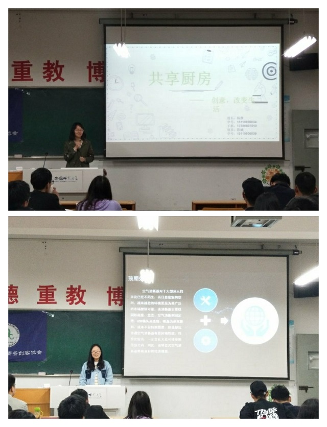 经过前期的宣传和选拔,共有15件作品进入决赛。4月15日晚决赛正式开始。院团委书记莫大贡老师、教育技术专业教师吴钦金老师、教育技术实习辅导员刘硕老师担任决赛评委。参赛选手准备充分,有序汇报。“炎热夏天中的洗澡神器”、“太阳能滴管浇水器”、“废物利用DIY自动浇花简易装置”、“伸缩型固物价器”等便利生活的创意展现在评委和观众面前。最终经过三位评委的公平公正的评审,“共享厨房――创意,改变生活”与“壁挂式空气清新器”两件作品获得此次比赛的一等奖。赛后,三位老师分别就此次活动进行点评,以此引导大学生学会发现生活中的问题,积极思考并大胆创新。
