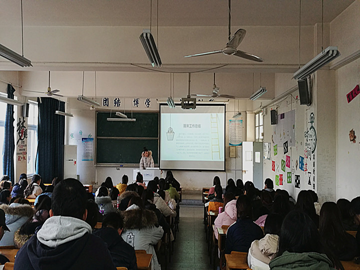 本网讯(教科院  张莺莺)为进一步增强班级凝聚力,提升班级归属感,12月21日中午,学院2016级学前教育、学前中美、教育学、教育技术专业全体同学在田楼8101教室开展了学期总结活动。活动由辅导员马兴老师主持。
