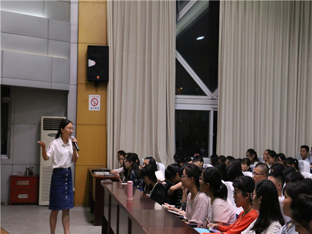 本网讯(教科院 张启山)齐聚缤纷校园,学子圆梦大学。9月9日晚上七点,教科院于田楼三楼报告厅召开2017级全体新生班会。出席本次班会的有院党委副书记张如华,新生辅导员谭茹轩。本次会议由谭茹轩老师主持。