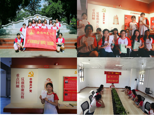 7月14日,为铭记先烈爱国事迹,培养当代大学生的爱国情怀,“健康伴我行”团队在河源市烈士陵墓园开展了“红色之旅”活动。此次活动以参观革命烈士纪念馆为主要内容,了解革命历史、认识红色文化为主要目的。19日,在队长温梓漪的带领下,“健康伴我行”实践团队参观了中国共产党反腐倡廉历程展览馆。阮啸仙先生的反腐事迹令人敬佩,中国共产党的反腐历程更是引发深思。在活动当天,队员们还在南湖幼儿园会议室开展有关“一学一做”的主题会议,对上午的参观内容进行讨论总结,并且进一步强调“一学一做”中“学”与“做”并行的重要性。