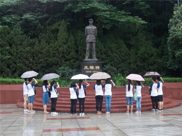 王稼祥生平纪念馆给团队成员们留下了深刻印象,其展现了王稼祥在中国革命的各个历史时期的重大贡献和丰功伟绩。该馆展示了很多王稼祥同志的手写信,详细描述了长征时期革命先辈艰苦的生活,令志愿者们肃然起敬!纪念园内的硅胶场景,还原了遵义会议议事期间的真实场景,王稼祥在遵义会议中投了十分宝贵的一票,开启了中国革命的新的征程。本次参观虽然没有导游的讲解,但志愿者们还是积极讨论,交流着自己了解到的有关王稼祥的生平。虽然天公不作美,但每个志愿者都有一颗激昂的心,朝气蓬勃,这体现出了身为当代大学生应有的积极向上的精神状态。