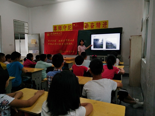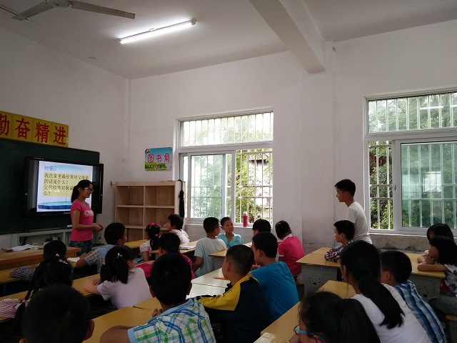 “百善孝为先”,让感恩从父母开始,“喝水不忘挖井人”,让热爱从生养我们的这片乡土开始。7月2日,团队成员分别开展了以“乡土文化”为主题的知识宣讲、“感恩父母、拥抱亲情”为主题的交流分享会。在“乡土文化”的主题宣讲中,志愿者通过图文并茂、声像结合的方式向孩子们再现了安庆黄梅戏的戏曲魅力、展示了潜山县的天柱风光、回顾了余井镇名人张恨水先生的生平。一段《女驸马》黄梅戏、一段天柱宣传片、一所先生故居,直观地让孩子们感受到潜山这片乡土所承载的优秀民族文化。