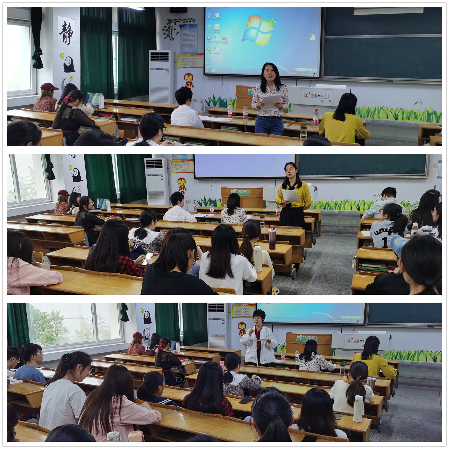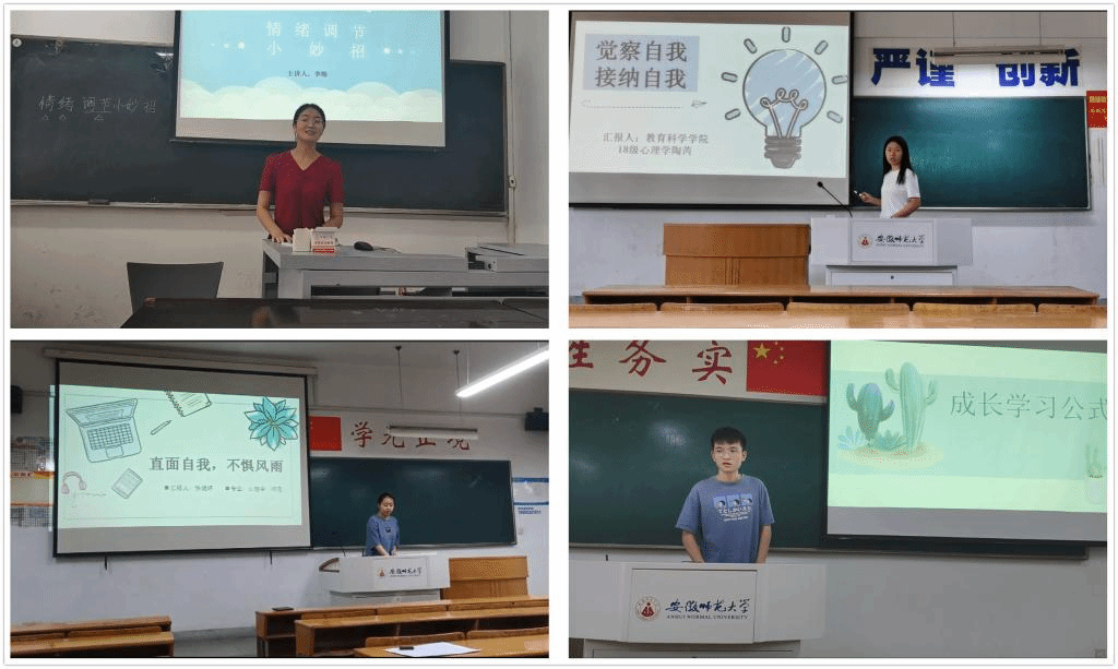 920日,专业邀请一线心理健康教育专家对18级各组提交作品以及17级独自提交的作品进行评审,评选出前9名选手参加决赛。926日下午两点开始,决赛阶段比赛正式拉开帷幕。有幸邀请到安徽师范大学附属中学德育处副主任谢莉老师、芜湖一中心理健康教育中心负责人邹睿老师和芜湖十一中团委书记兼心理健康教育中心负责人吴桂芬老师担任本次比赛的评委,进行现场评分,其余18级心理学学生与19级心理学学生进行了现场观摩。
