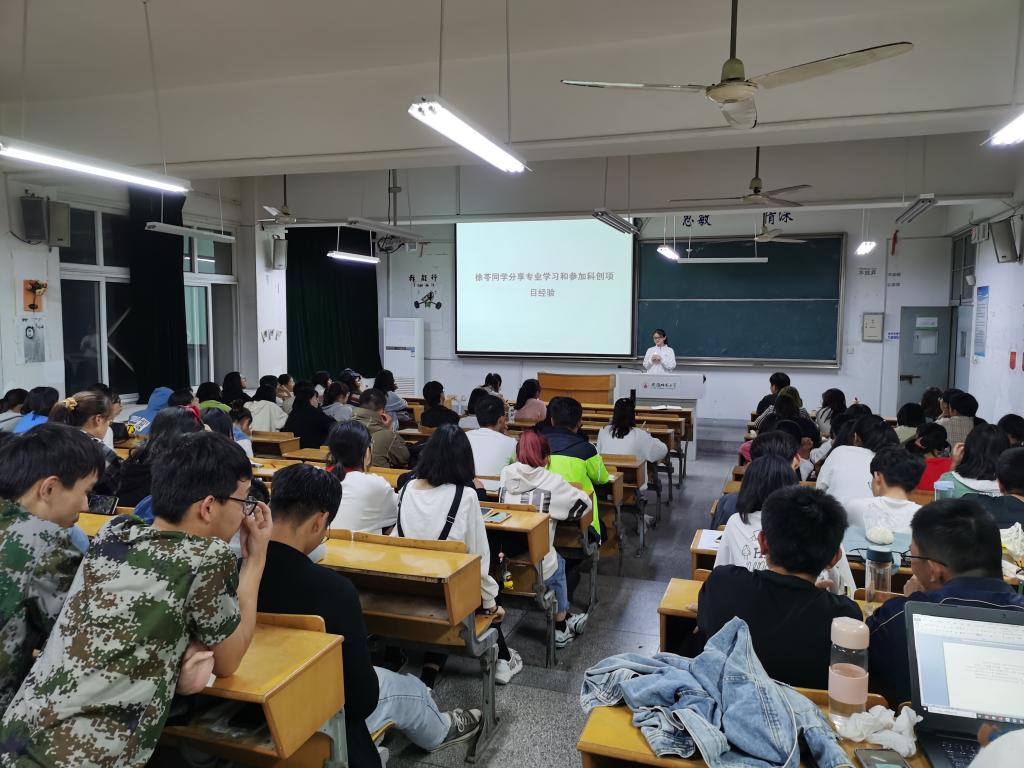 接下来,2017级心理学专业徐苓同学从自身保研经历出发,鼓励新生同学们坚持英语学习,并注意区别大学和高中学习特点,学会主动把握学习机会,在小组合作作业中积极沟通,主动争取参与各位老师课题组的学术研究活动,提成自身科研能能力。