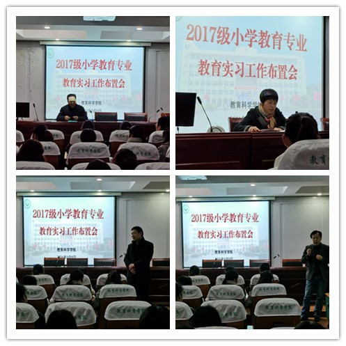 本网讯(教科院 刘标 吴烈龙)2021年3月8日上午,2017级小学教育专业召开教育实习工作布置会,与会人员有教育科学学院党委书记方泓、小学教育专业负责人王芳、指导教师段兆兵、姚运标以及2017级小学教育全体同学。会议由2017级辅导员谭茹轩老师主持。会上,王芳老师对本次实习工作做了详细的情况介绍和安排;学生吴烈龙代表发言;最后,党委书记方泓总结并预祝此次实习工作圆满成功。