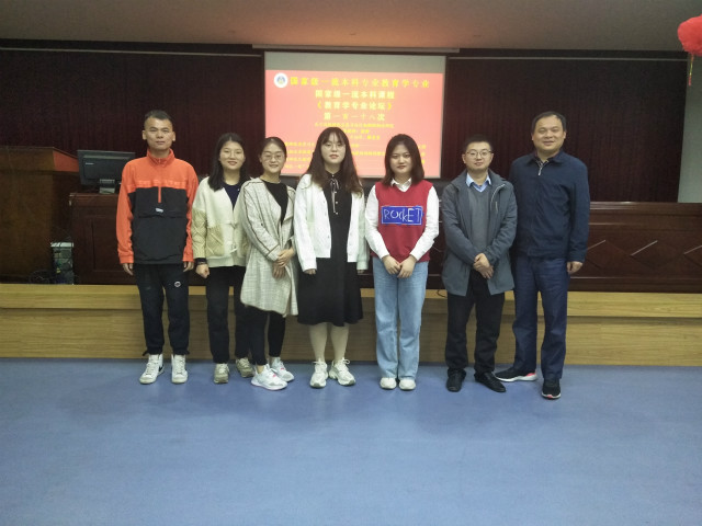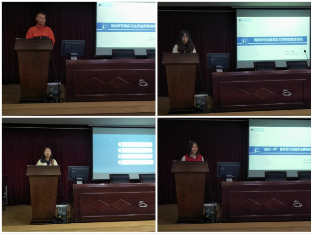 最后一位汇报人李新蕊以《“四位一体”教育实习激励机制构建研究》为题,剖析了教育实习激励机制现存问题及其原因,并提出双向共赢、三方协同、四体联动的“四位一体”教育实习机制。四位同学的汇报结束后,进入集体讨论环节,大家积极发言,热烈讨论,在思维的交流与碰撞中不断接近真理。