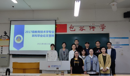 本网讯(教育科学学院 施羽晗/杨滨)经教务处统一部署,学院精心设计,教育技术学专业2021届本科生毕业论文答辩工作顺利开展。4月19日下午,我院教育技术学专业于田家炳教育书院8205、8207以及8208教室分三组开展2021届本科生毕业论文答辩工作。每组设答辩组长、答辩专家、答辩秘书各1名。