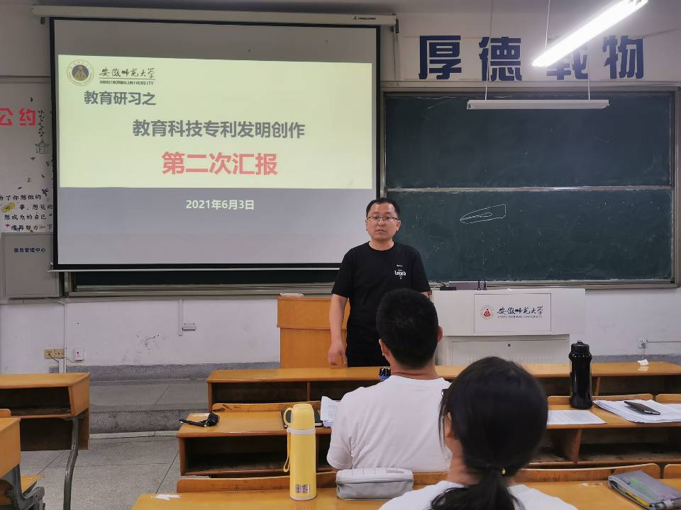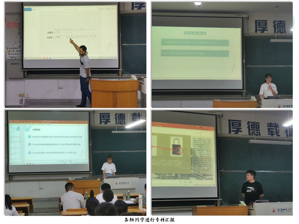 发明显智慧,创新结硕果。教育科技专利发明创作汇报于5月27日下午、6月3日下午分两次进行,教育技术学专业负责人杨滨,专业教师吴文涛、席鹏与辅导员詹雅玲出席活动并担任评委。汇报开始前,吴文涛老师简单开场致辞,指出了活动开展的重要意义,并对同学们的作品内容表示期待。会上,各组学生有条不紊地上台对本组作品进行简要介绍,着重说明了作品的创新技术。评委老师仔细聆听,针对汇报内容提出问题,并给予各个作品准确、有效的改进意见。汇报现场气氛活跃,秩序井然。28组汇报全部结束后,席鹏老师总结发言,向在座同学提出选题、设计方面的建议,同时预祝同学们都能有所收获。