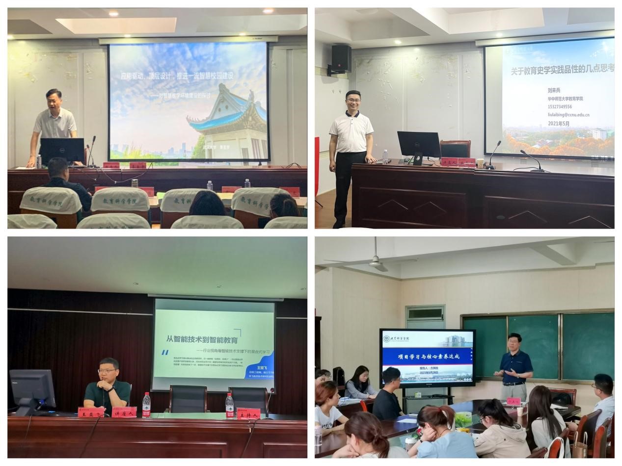 (本网讯 教科院)钻坚研微,以求真知卓识;博洽多闻,广纳学术精华。6月4日,我院2021年研究生学术报告活动周落下帷幕,至此,从5月20日开始的系列学术汇报讲座历时16天圆满结束。我院先后邀请北京师范大学、华东师范大学、浙江大学、武汉大学、华中师范大学、南京师范大学、湖南师范大学、东北师范大学、浙江师范大学、江苏第二师范学院、安徽省教育科学研究院、科大讯飞教育技术研究院总计12所高等院校和机构共14名专家教授、高级工程师、教研员,作各领域主题的学术汇报讲座,我院师生累计参与人数达到1000余人次。