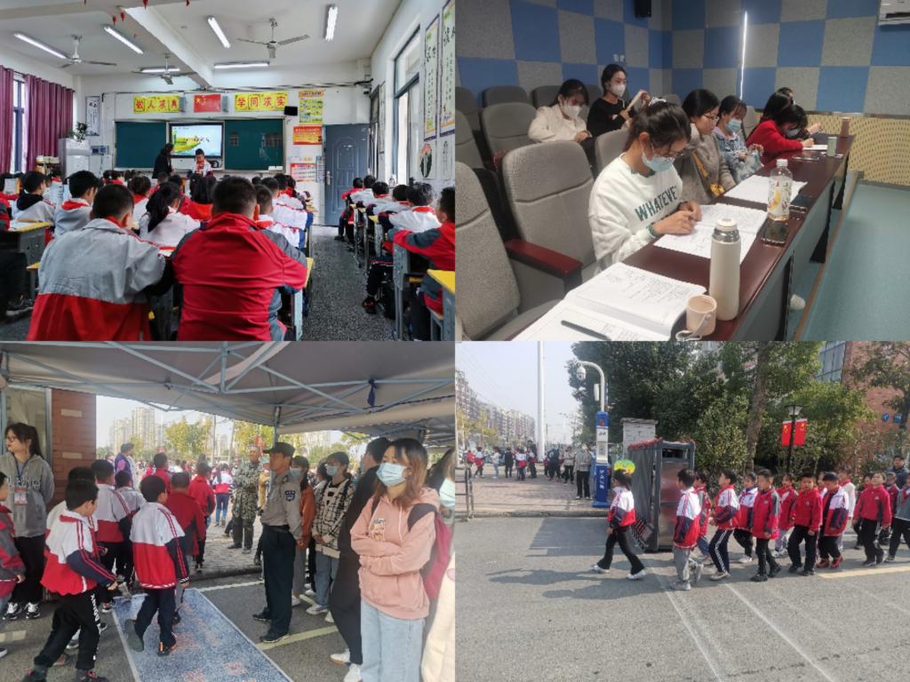 在推门听课环节,同学们在语文、数学和英语等学科中自由选择自己感兴趣的课堂,分组到不同的班级听课,在观摩课堂情境中深入了解在小学课堂中是如何组织和开展教学工作的。同学们认真学习,及时记录自己的感悟与反思。听课活动结束后,闻世华老师带领同学们去学校大门口观看中午放午学路队组织活动,全面展示学校特色活动和育人细节。
