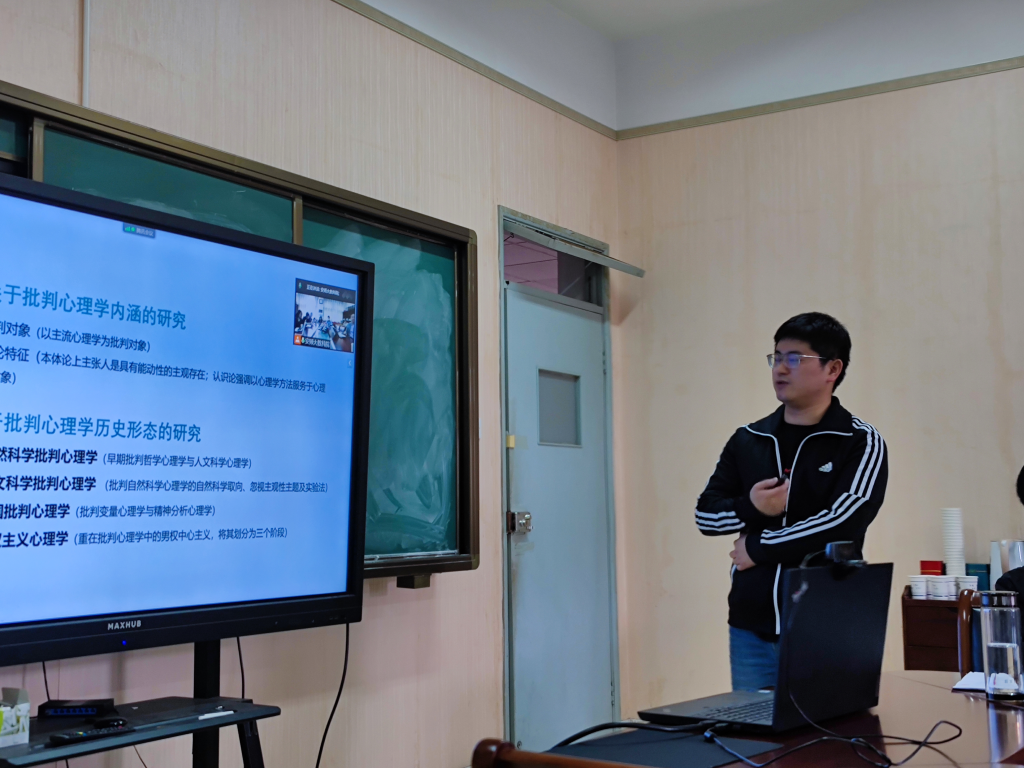 围绕论坛专题,王礼军、万振东两位老师依次做了精彩的学术分享。王礼军老师汇报的主题是《心理传记学视域下安徽东至周氏家风文化与家庭教育研究》,主要分析了研究周氏家风文化与家庭教育的意义,周氏家风文化的传承脉络、发展特点、文化内涵及其对当前家庭教育的启示;万振东老师汇报的主题是《“主体性”的澄明、消解与重构——批判心理学的批判》,主要向大家介绍了批判心理学的内涵,指出批判心理学具有崇尚知识的主观性、强调心理学的解放性、注重理论的演绎性等特点,并分析了批判心理学目前存在的问题,提出未来的心理学建设应树立辩证唯物主义认识论,秉持整合视野,从而真正建构一种为人类命运共同体服务的心理学。