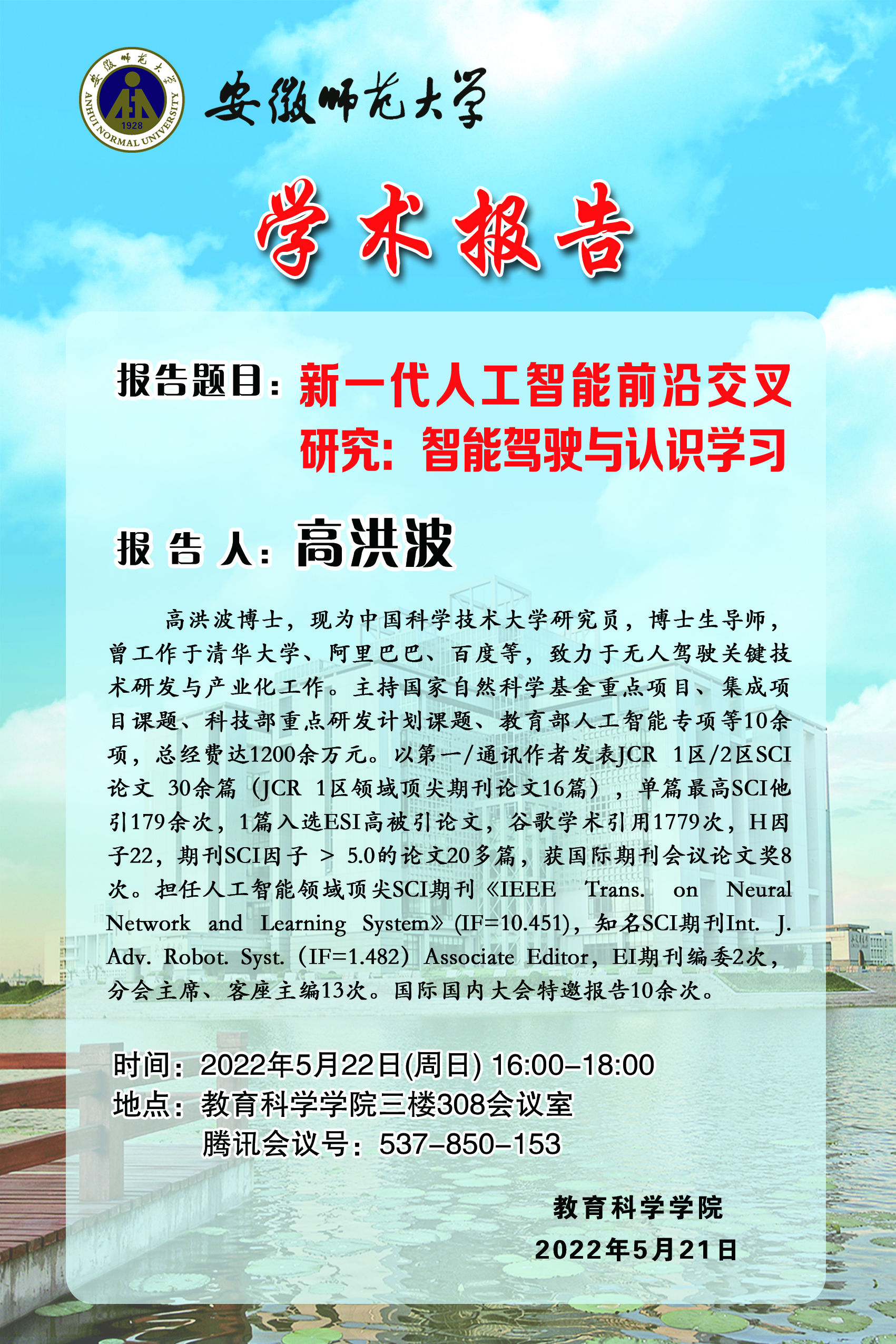 【学术预告】高洪波:新一代人工智能前沿交叉研究:智能驾驶与认识学习