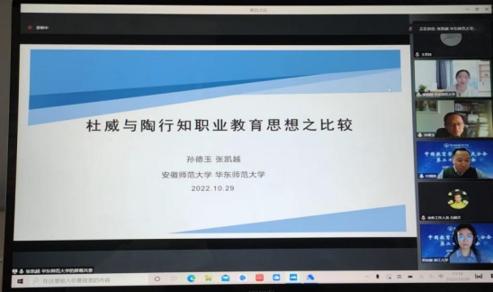 我院参会师生为本次年会做了充分的准备,围绕会议主题提交了4篇学术论文。孙德玉教授与张凯越作题为《杜威与陶行知职业教育思想之比较》,李宜江教授与刘琦作《孔子“以身作则”思想及其对“大先生”品格塑造的历史镜鉴》,刘婉老师作《论传统儿童公育观念的本土孕育与演变》,杨俊铨老师作《返本开新:熊十力的办学探索及教育精神》的报告,研讨氛围热烈浓厚,探讨内容精彩纷呈。
