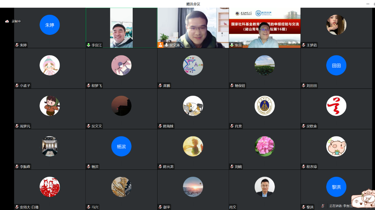2023年1月10日晚,“赭山青年学者论坛”(第十六期)以线上形式如期开讲。学院特邀教育部人文社会科学重点研究基地西南大学西南民族教育与心理发展中心研究员、西南大学教育学部教授张良,就国家社科基金教育学课题申报进行了经验交流与分享。院长李宜江教授、学校其他学院部分教师、学院青年教师近百人线上参与。分享会由副院长吴文涛主持。