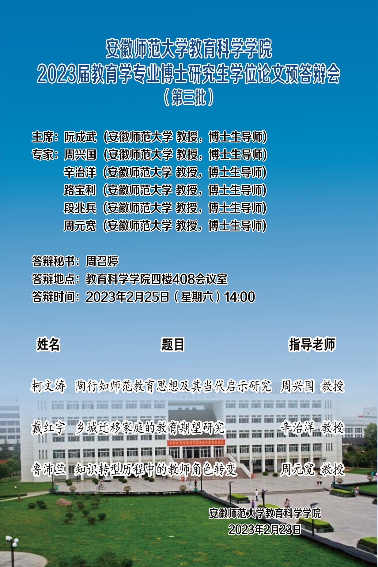 安徽金年会2023届教育学专业博士研究生学位论文预答辩会(第三批)