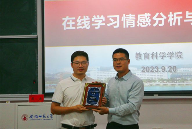 9月20日晚,“赭山青年学者论坛”(第二十五期)在教学楼1401教室如期举行。我院青年教师周进博士受邀为在座研究生们带来了主题为《在线学习情感分析与应用探索》的学术报告。副院长吴文涛、2023级硕士和博士研究生参加了此次论坛,报告由2023级小学教育专业研究生朱建荣主持。