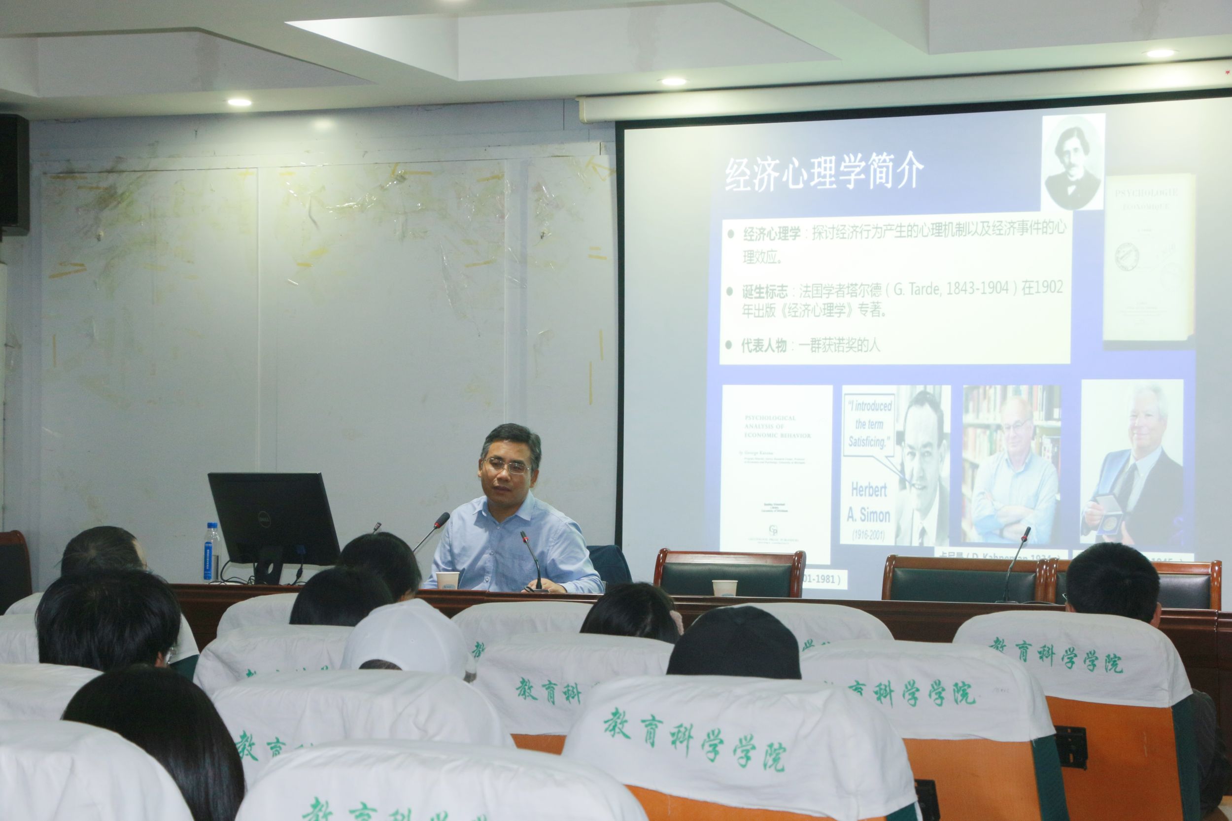 10月28日下午,皖江心理大讲坛第一百零六讲报告会在教育科学学院学术交流中心如期开展。本次报告会的主题是由中国人民大学心理学系主任、辛自强教授所带来的《人性与经济行为研究:经济心理学前沿》。报告会由韩建涛副院长主持,学院部分教师出席了本次报告会, 2023级心理学研究生到场聆听。
