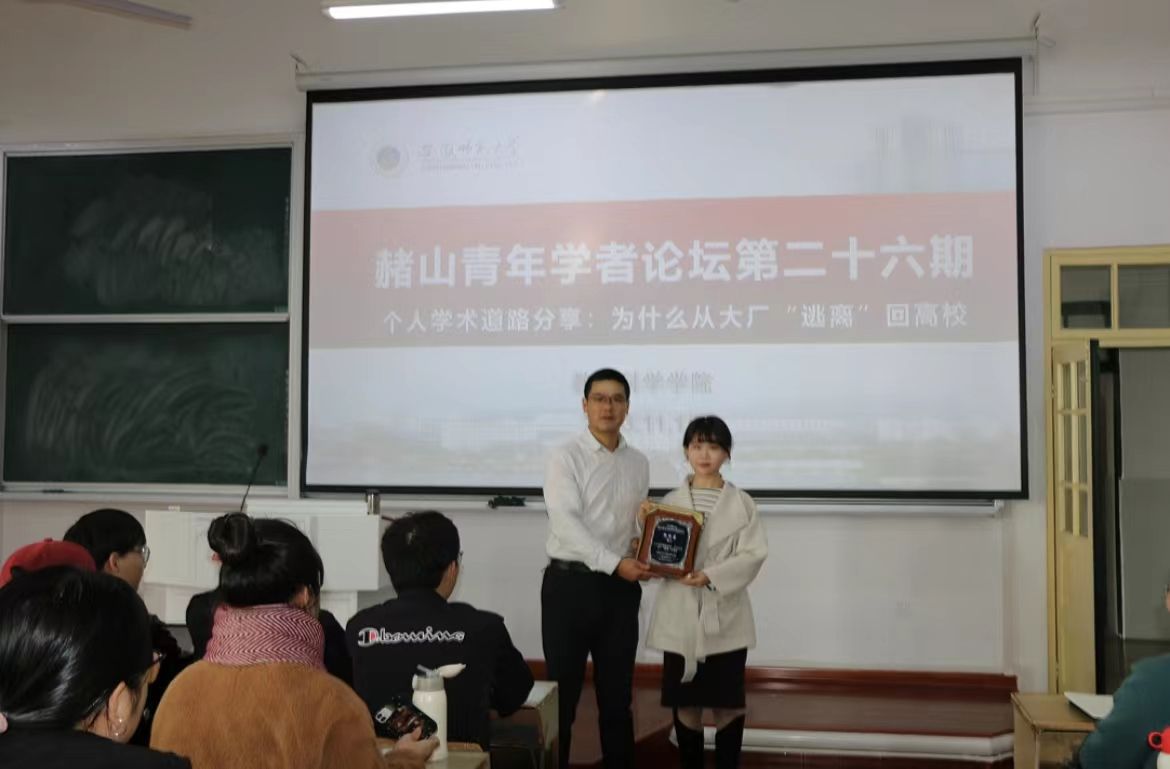 11月15日下午,“赭山青年学者论坛”(第二十六期)在教学楼1401教室如期开讲。青年教师倪雨菡受邀为在场师生带来了主题为《个人学术道路分享:为什么从大厂“逃离”回高校》的学术讲座。副院长吴文涛、辅导员莫大贡、青年教师陈元龙出席了本次讲座,教育科学学院2023级研究生到场聆听。讲座由2023级研究生陶丽主持。