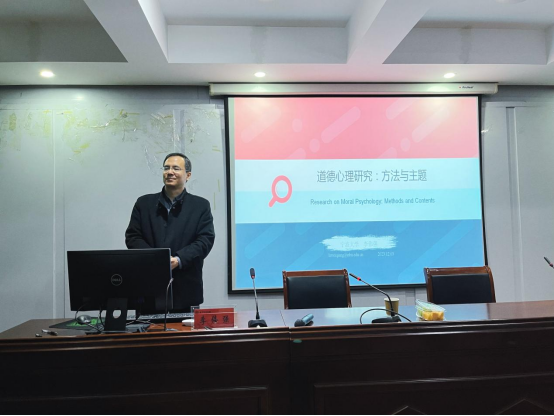 讲座伊始,李伟强教授介绍了他和团队所在的社会认知与道德决策实验室,也介绍了研究的范围包括社会决策、道德决策、社会规范、计算建模等。李伟强教授首先阐述了道德心理学的概念,指出道德心理是由道德认识、道德意志、道德情绪、道德行为四个方面所组成。接下来,他介绍了与道德心理有关的理论,例如:从道德领域、习俗领域、个人领域、安全领域或谨慎行为领域的不同角度来解释社会认知领域理论,探讨道德困境与道德决策关系的道德判断的双过程理论等等。紧接着,李伟强教授从道德心理研究中的一般模型和理论出发,强调了事件特点等情景变量和道德敏感性、自我概念、认知、情绪、意志等个体变量对个体解释道德情景、进行道德推理和道德判断、进而做出道德决策和道德行为的影响,阐述了道德心理研究的思路和方法。最后,李伟强教授结合他与研究团队所做的实证研究及其成果进行了详细地讲解。