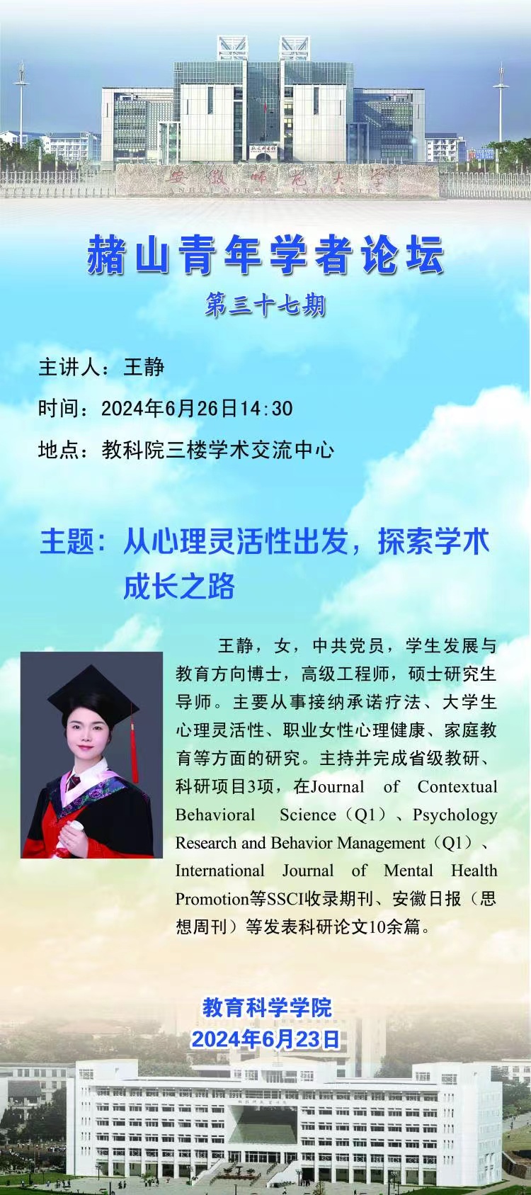 【学术预告】赭山青年学者论坛第三十七期——王静:从心理灵活性出发,探索学术成长之路