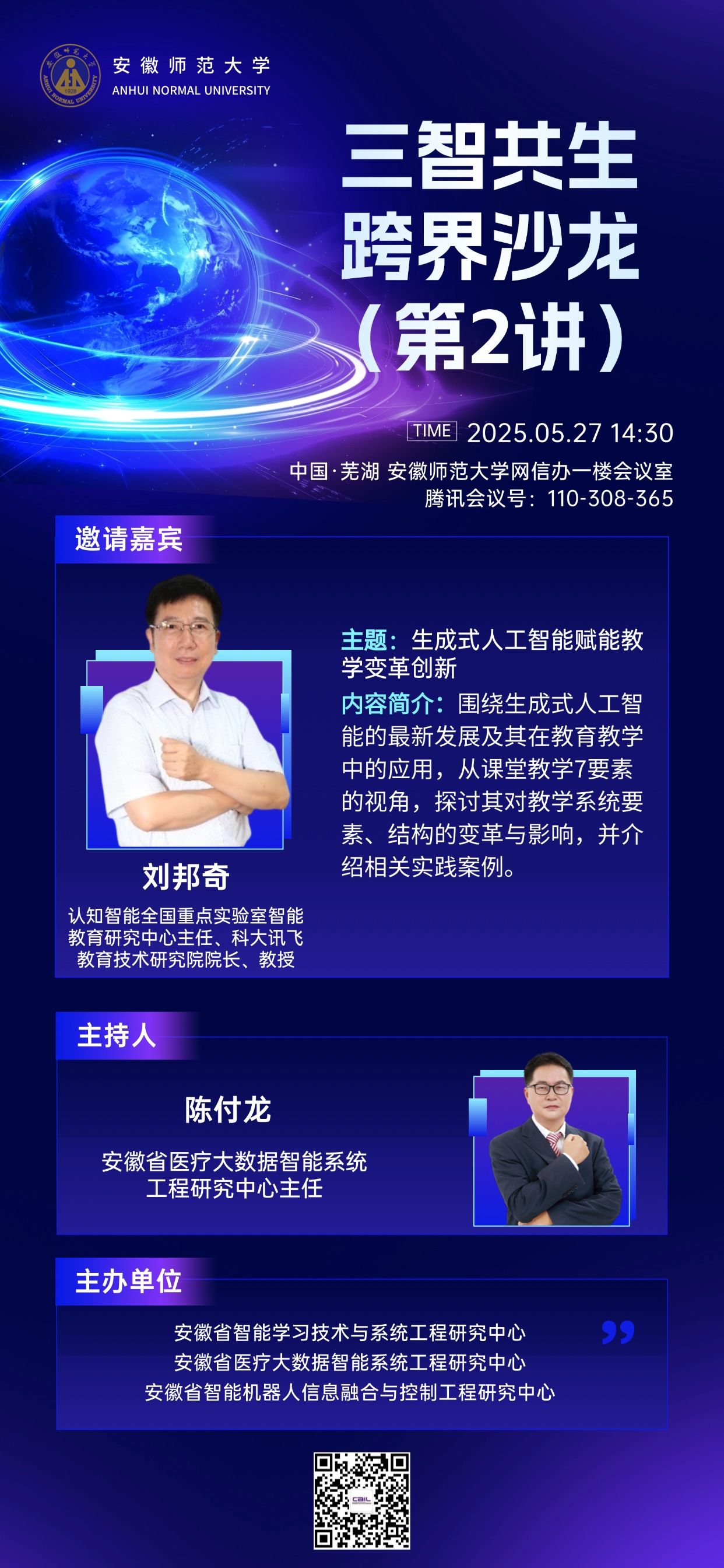 【学术预告】三智共生跨界沙龙(第2讲):生成式人工智能赋能教学变革创新