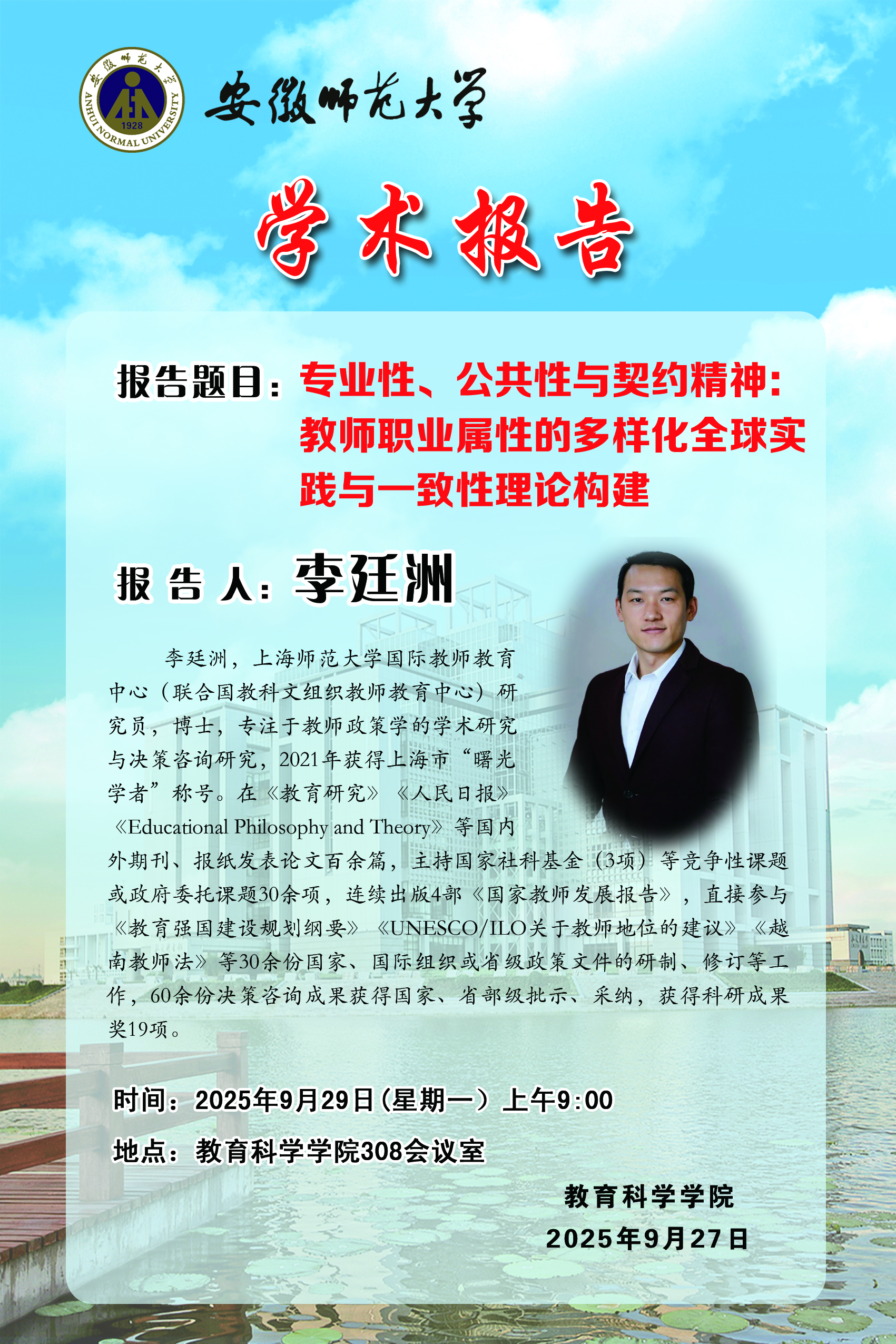 【学术预告】李廷洲:专业性、公共性与契约精神: 教师职业属性的多样化全球实践与一致性理论构建