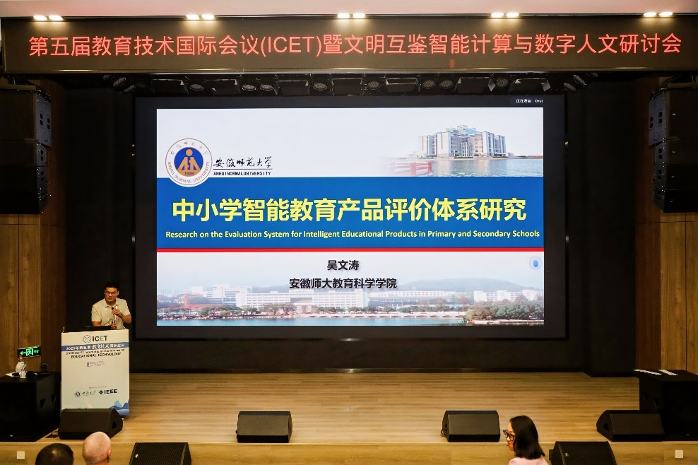 在主旨报告环节,美国印第安纳大学Curtis J. Bonk教授、浙江大学李艳教授、北京大学王军教授等多位海内外知名学者,围绕人工智能教育应用、生成式AI行为分析、智慧共享基础设施等前沿议题分享了研究成果。其中,吴文涛教授受邀作了题为“中小学智能教育产品评价体系研究”的主旨报告。