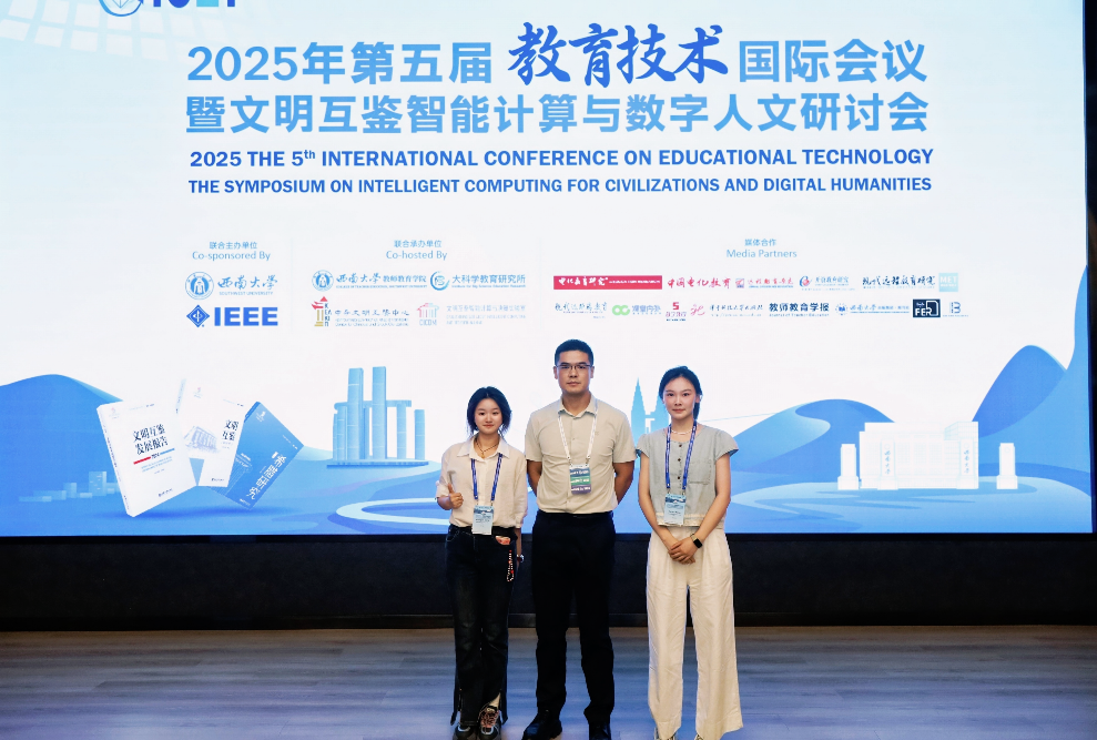 2025年9月26日至27日,由西南大学主办的第五届教育技术国际会议(ICET 2025)暨文明互鉴智能计算与数字人文研讨会成功举办。本次会议以“借助新兴教育技术促进包容性与创新性学习”为主题,汇聚了来自全球18个国家与地区的专家学者、教育工作者及研究生,共同探讨教育技术前沿趋势与未来发展。我院吴文涛教授及两名硕士研究生应邀参会,并分别在主会场与分论坛作学术报告。