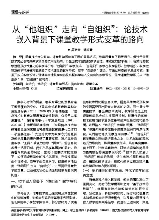 吴支奎:从“他组织 ”走向“自组织” : 论技术嵌入背景下课堂教学形式变革的路向