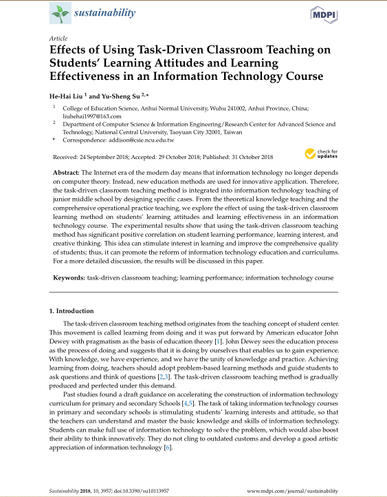刘和海等:Effects of Using Task-Driven Classroom Teaching on Students’ Learning Attitudes and Learning Effectiveness