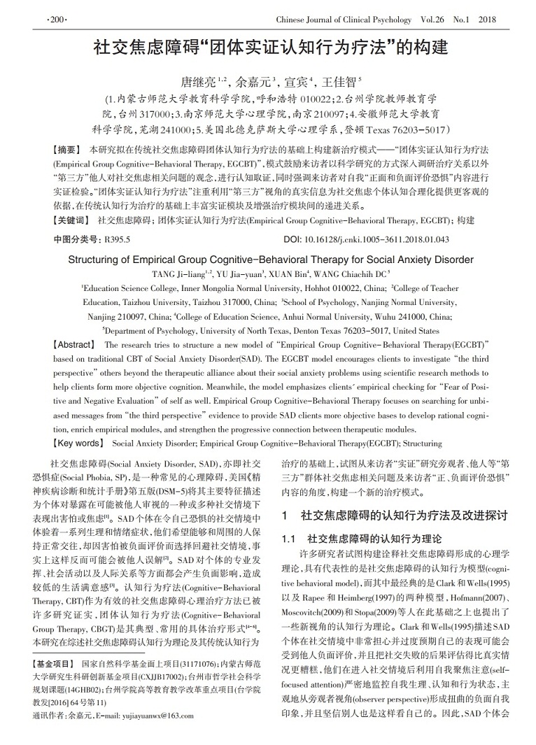 宣宾:社交焦虑障碍“团体实证认知行为疗法”的构建