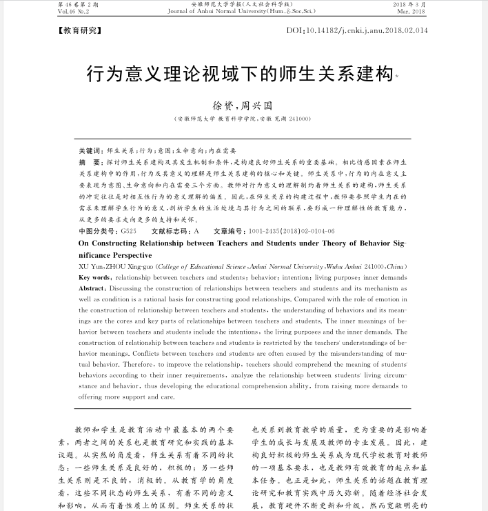 徐赟,周兴国:行为意义理论视域下的师生关系建构