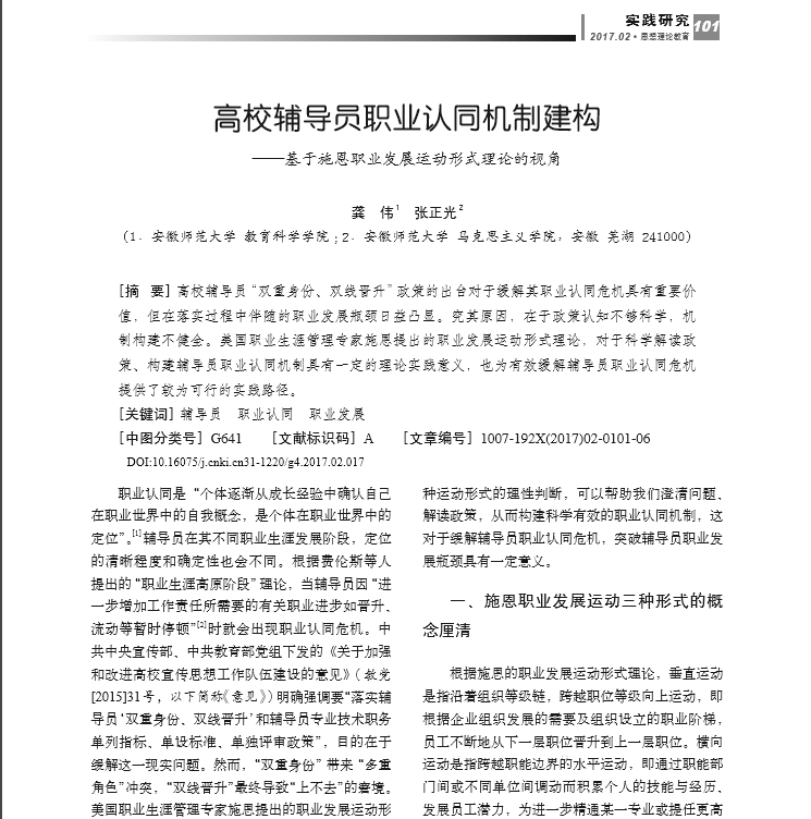 龚伟、张正光:高校辅导员职业认同机制建构——基于施恩职业发展运动形式理论的视角