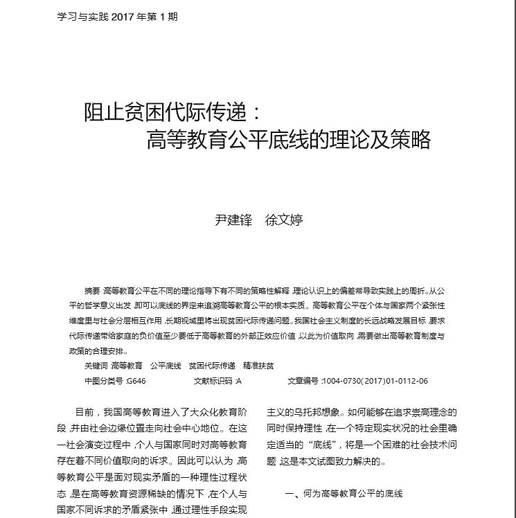 尹建锋:阻止贫困代际传递: 高等教育公平底线的理论及策略