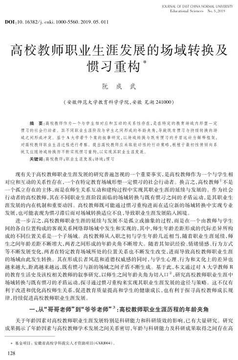 阮成武:高校教师职业生涯发展的场域转换及惯习重构