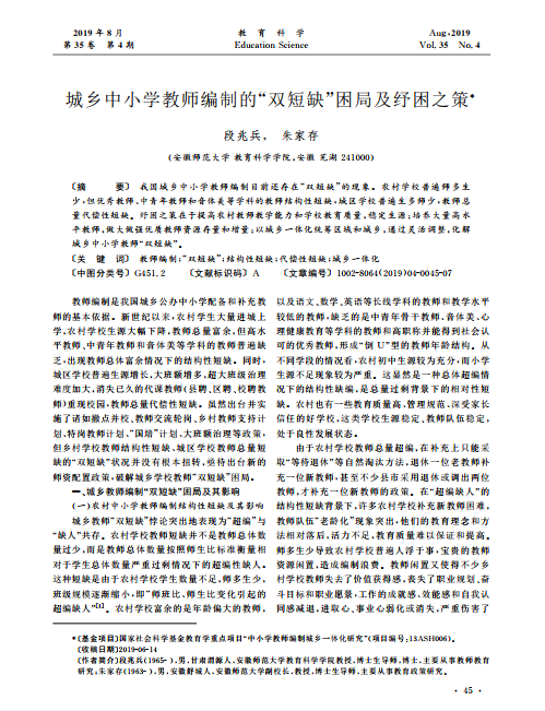 段兆兵,朱家存:城乡中小学教师编制的“双短缺”困局及纾困之策