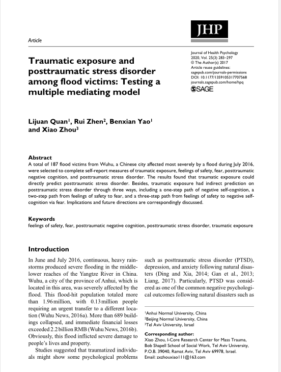 全莉娟:Traumatic exposure and posttraumatic stress disorder among flood victims