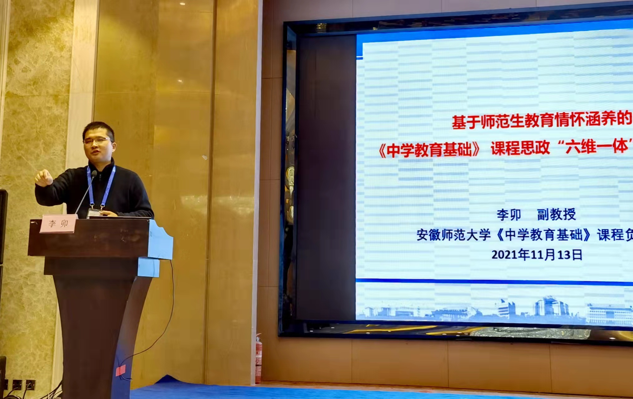 教科院李宜江教授、王芳副教授、李卯副教授受邀分别作了“教师教书育人能力素质:内涵及提升路径”“抓‘四个课堂’整体联动、促小教学子师德养成”“基于师范生教育情怀涵养的《中学教育基础》课程思政理论与实践探索”等三个大会专题报告,并就教师教育改革与发展中的相关理论和实践问题与参会专家学者进行了广泛地交流。