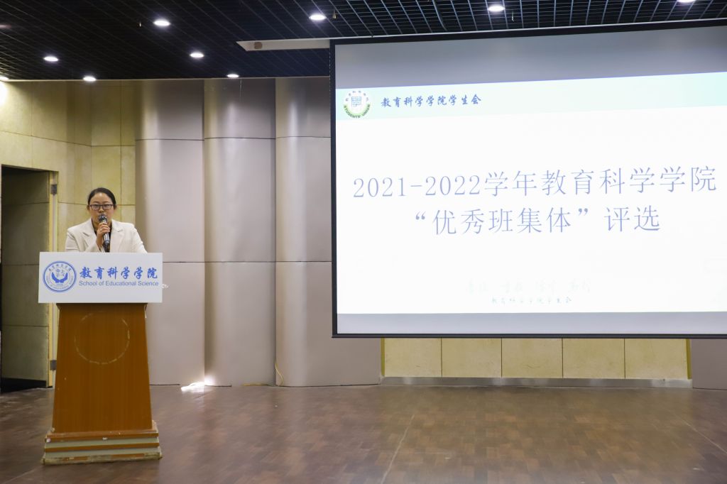 2022年10月21日晚,教育科学学院于食堂四楼多功能报告厅开展“优秀班集体”评选活动。院党委副书记杜凤、院团委书记张理强、副书记付银行、2020级辅导员蔡文、2021级辅导员赵茜、2022级辅导员程雅楠以及各班学生代表参加。