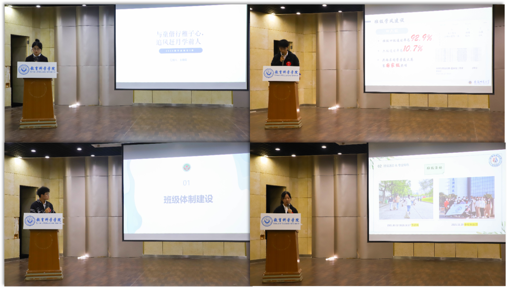 此次评选共有来自2020级、2021级的13个班级参与。各班级的评选代表通过ppt汇报,围绕组织建设、思想引领、学风建设、基础文明等全方面展示各班的班级风采,突出班级的创建目标与特色活动,体现教科学子良好的精神面貌。
