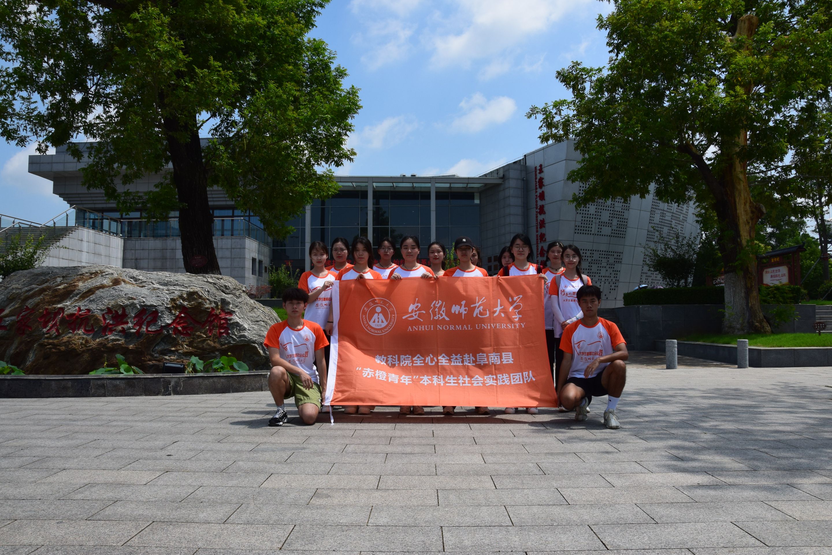 7月8日,教育科学学院全心全益赴阜阳市阜南县“赤橙青年”本科生社会实践团队在方集镇中心学校教务主任王宁的带领下乘车前往王家坝,参观王家坝大闸和王家坝抗洪纪念馆。
